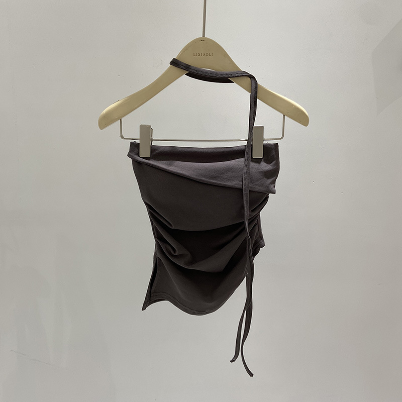 春夏新作韓国版スリムデザイン痩身2025プリーツトップ女性用不規則チューブトップ