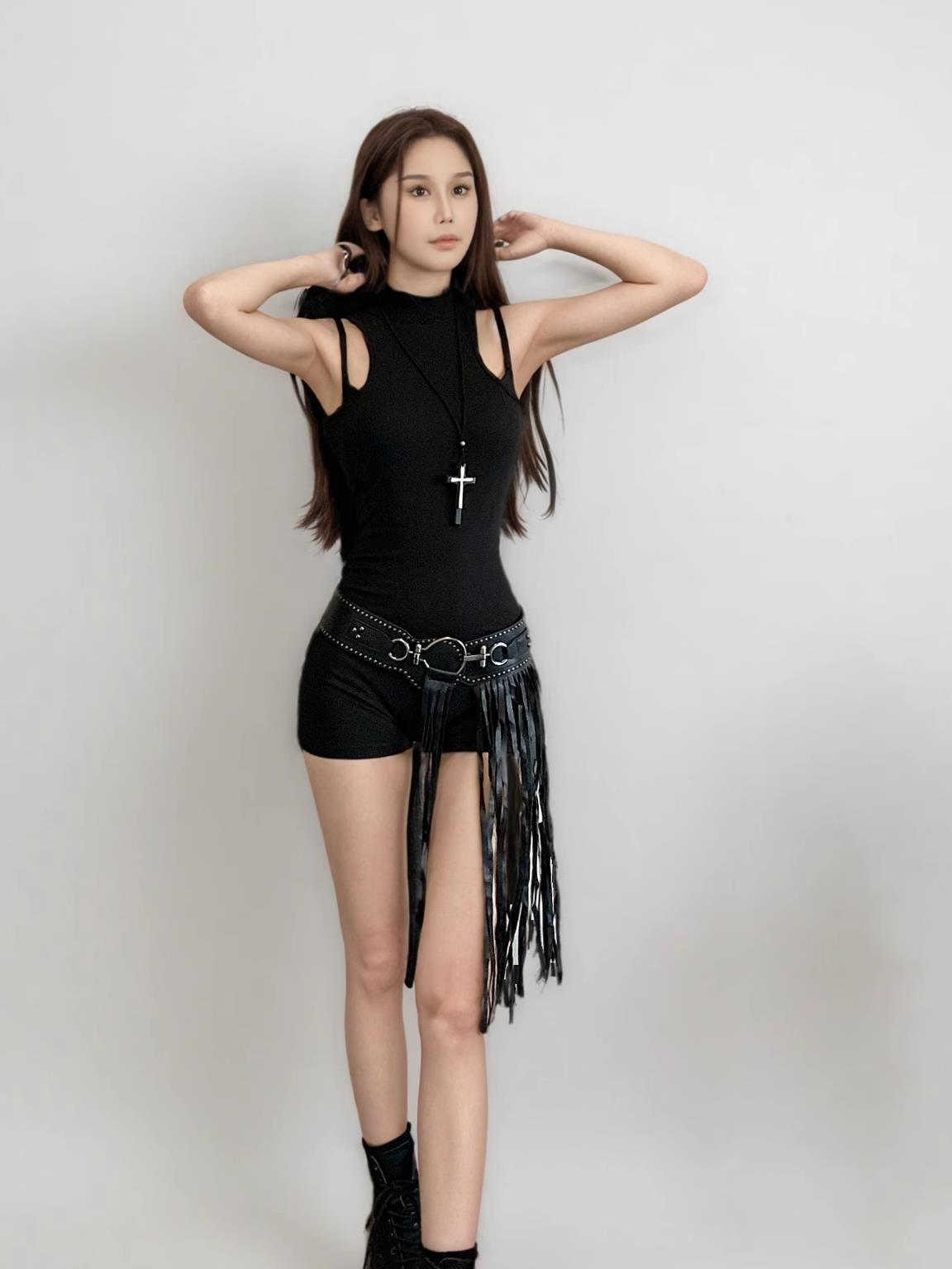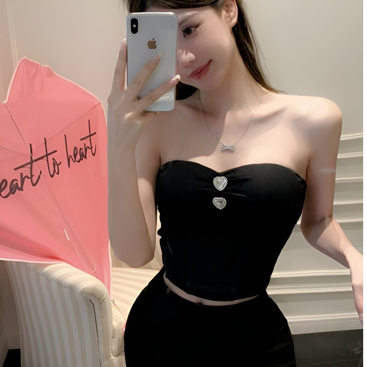 ウエストを細くする高級アウタートップ、胸を包む女性のセクシーなチューブトップ、スリムでホットな女の子の純粋な欲望のショートボトム