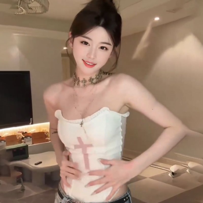 体外感覚サマースタイル2025デザインスリムフィットプリントレディースチューブトップホットガールクロスホワイトレースウェア