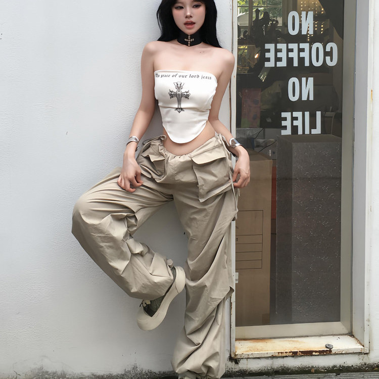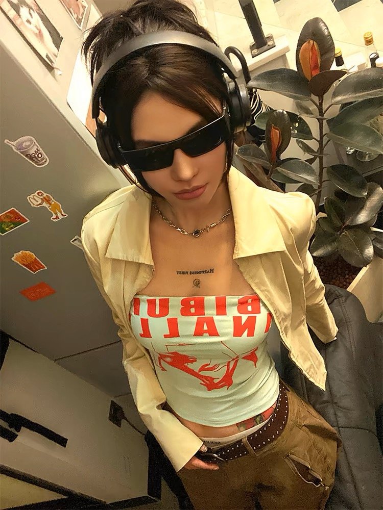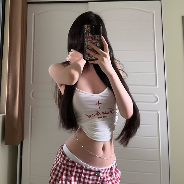 セクシーなベスト女性の新しい夏 2025 レトロ純粋な欲望スタイル底トップホットガールレタープリントアメリカンチューブトップ