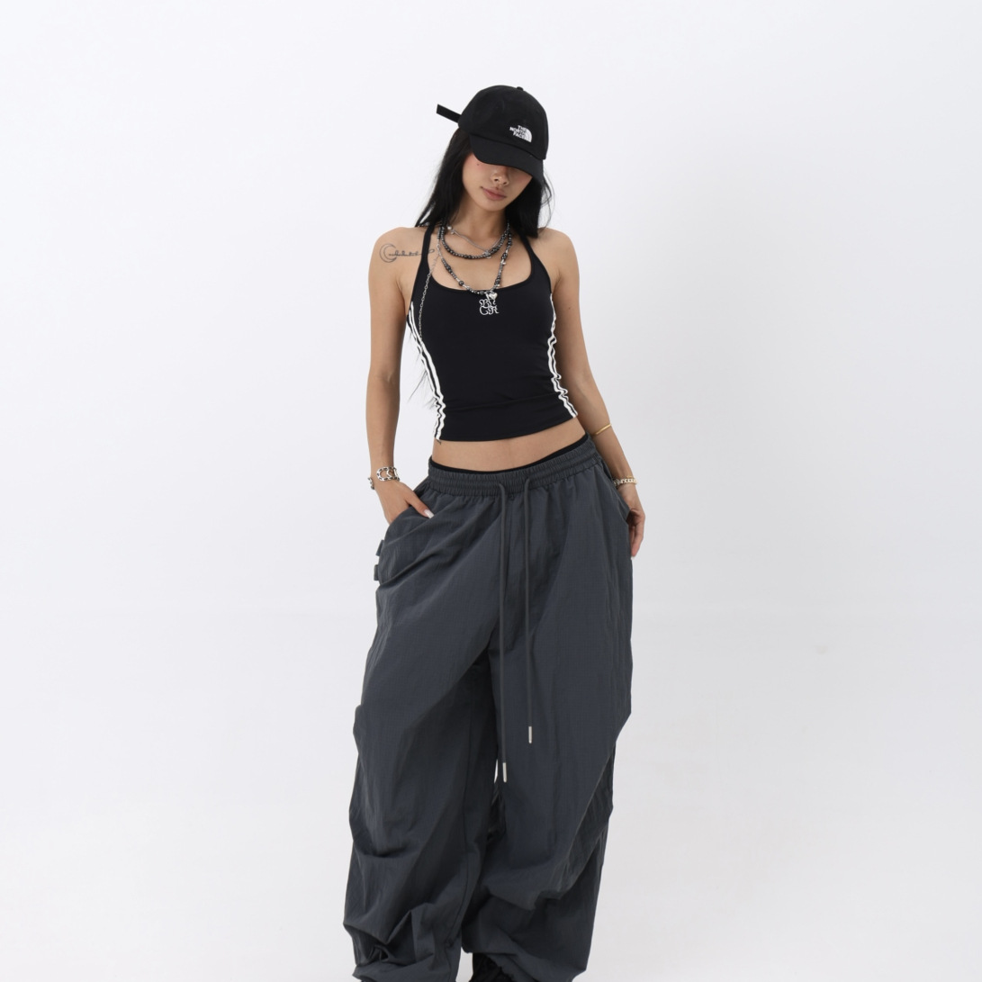 女性用のショートスリムI字型アメリカンスリムコントラストカラーデザイントップ、ホットガール向けの夏のスポーツプリントキャミソール