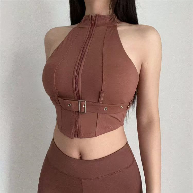 トップスバックルトレーニングショルダーショーツベルト痩身オートバイスタイルセクシーな下着フィットネスヨガノースリーブスポーツブラ