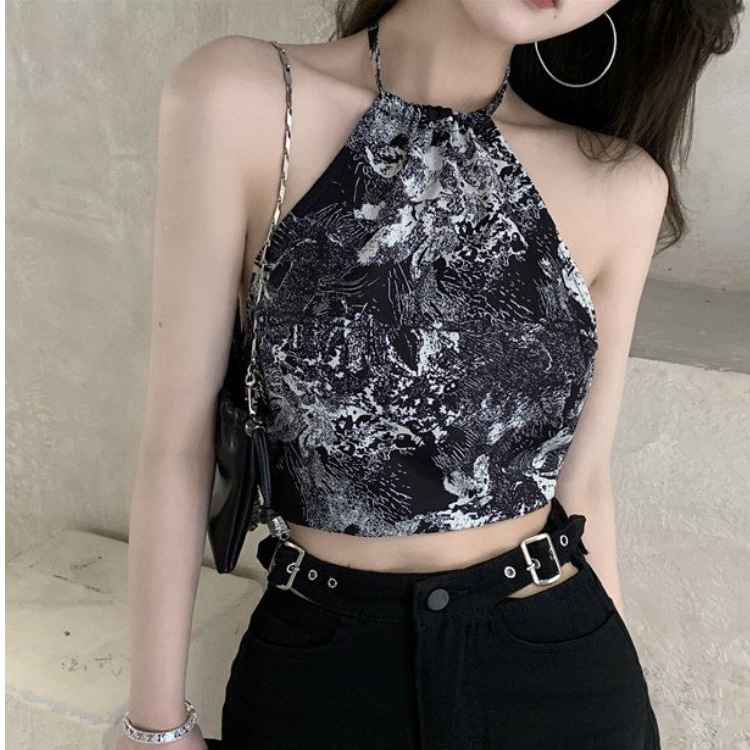 セクシーなバックレス 2025 ショートトップ新しいヒョウ柄インナーキャミソール女性のホルターネック春と夏のホットガールデザインアウターウェア