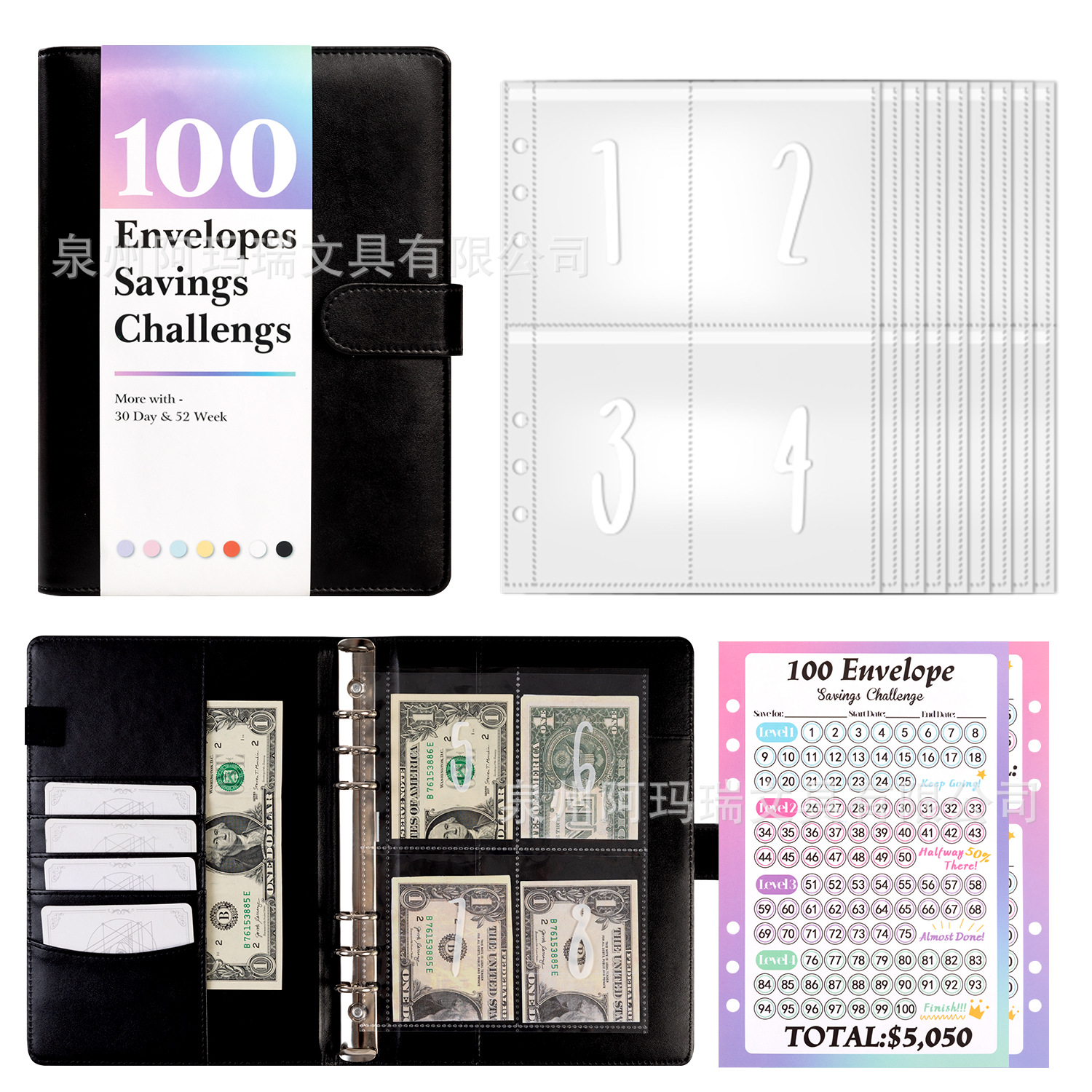 国境を越えた100 envelopeッチチャレンジ光面マカロン100日間のルーズリーフノート貯金予算本