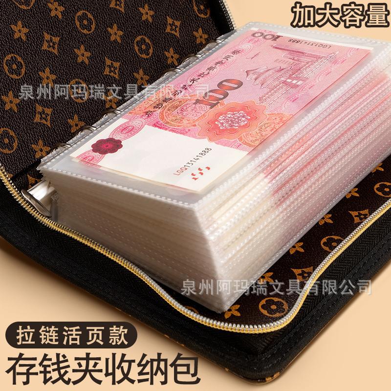 A6 現金貯金帳 ジッパー付きルーズリーフマネークリップマネーブック 大容量収納袋 記念紙幣紙幣コレクションブック