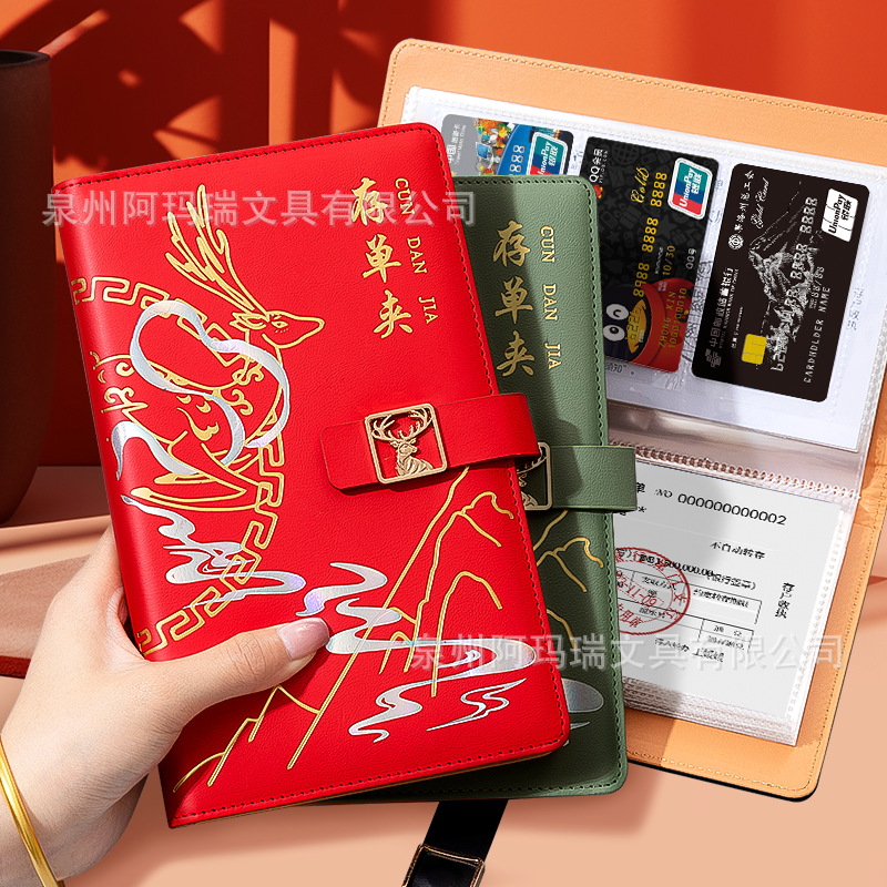 Guochao 通帳クリップ紙幣収納ブック多機能定期銀行通帳預金書大容量通帳ブック