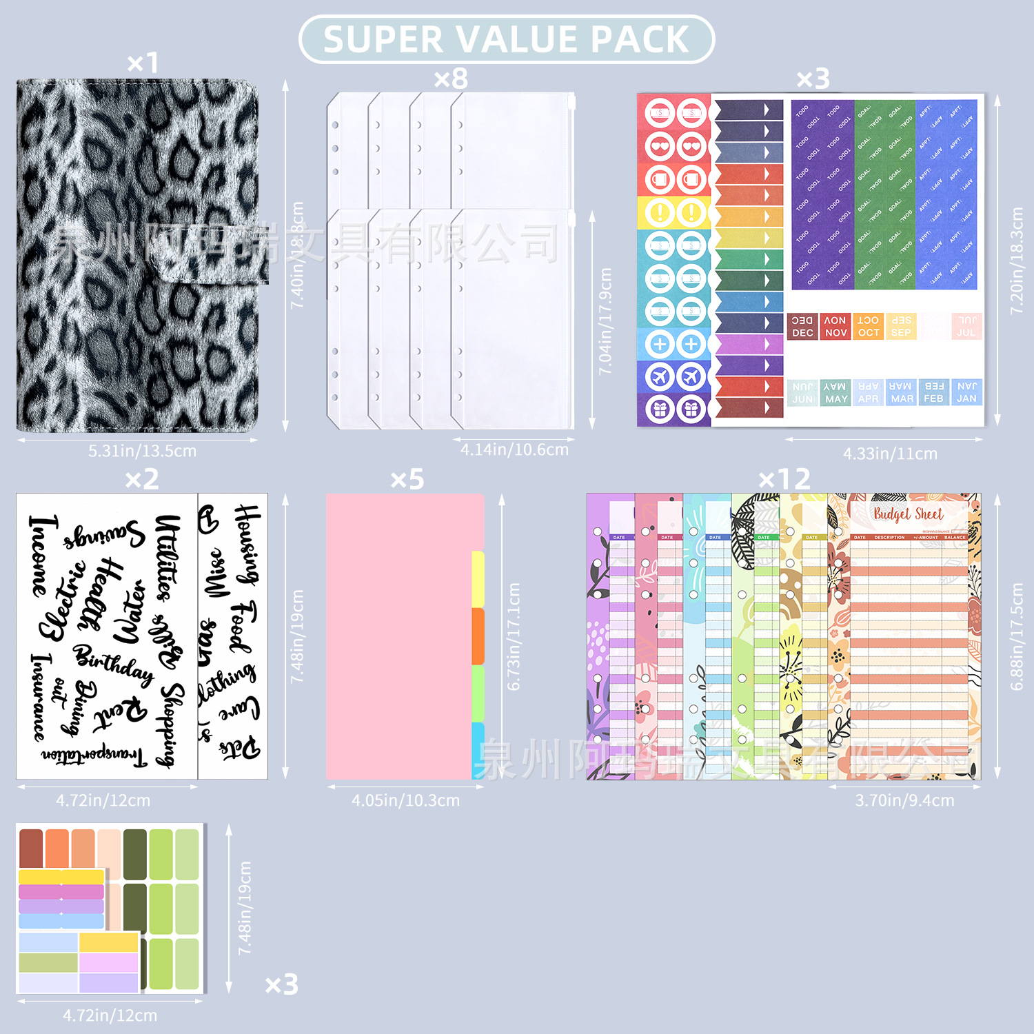 クロスボーダー A6 ヒョウ柄マカロンルーズリーフハンドブッククリエイティブ現金予算会計ノートブック財務計画ノートブック