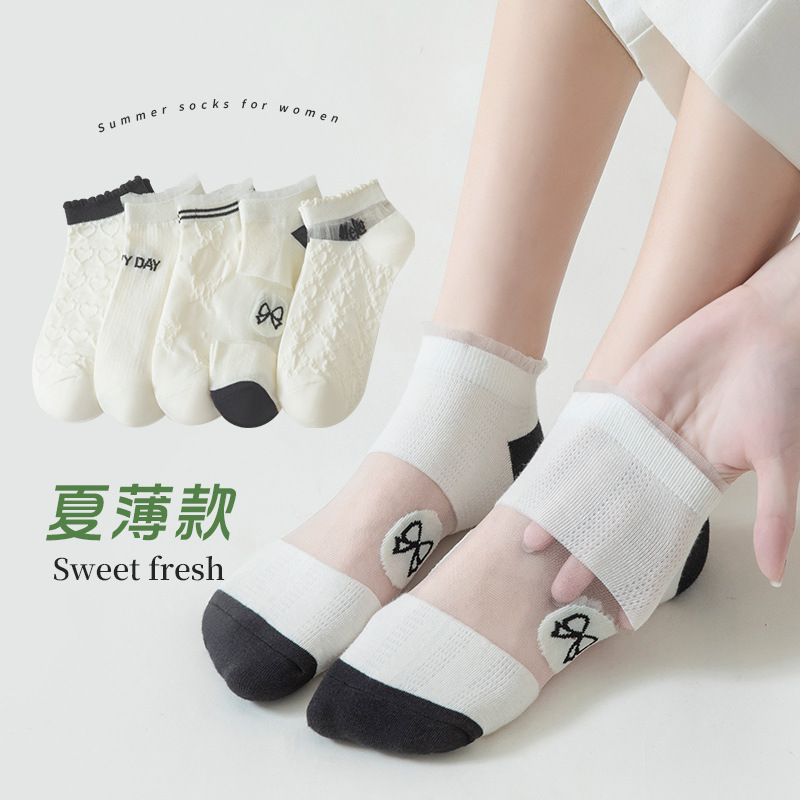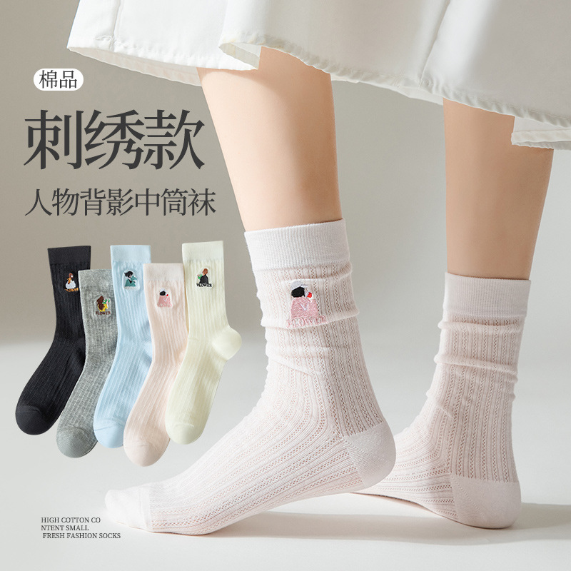 靴下女性のキャラクター漫画刺繍パイルソックス夏薄いメッシュ綿の靴下 2025 新しいホットスタイル卸売