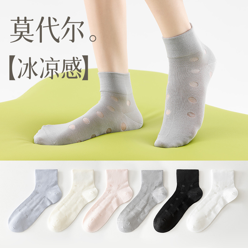 女性用卸売靴下、夏用薄型中空メッシュホールソックス、モーダル通気性ミッドカーフソックス、夏用消臭ソックス