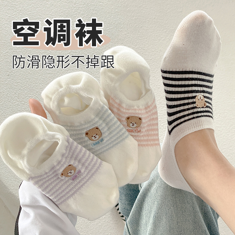 ボートソックス女性の夏薄い浅い口見えない靴下綿脱落防止滑り止め漫画刺繍かわいい空調靴下卸売