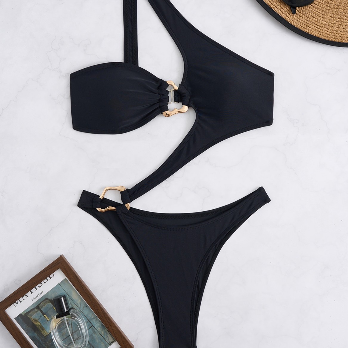 2025新型欧米の愛の首を掛けてビキニのブラジルのセクシーな金属を集めて純色の分体の越境の水着を掛けます。