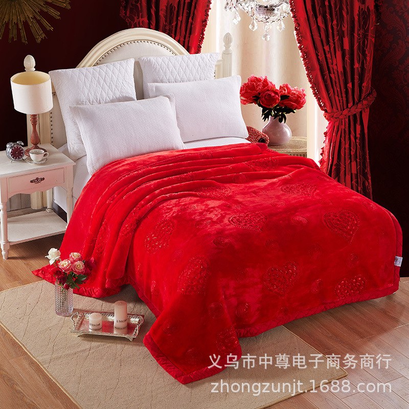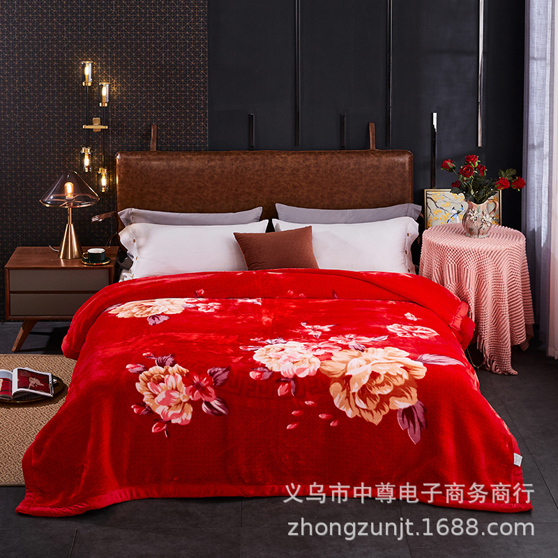 毛布ラッシャー毛布二重厚結婚祝い結婚祝いの毛布大紅喜字龍鳳毛布卸売り