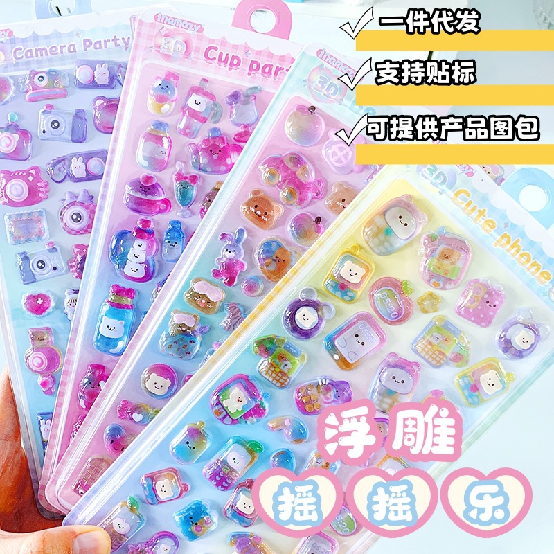 熱い販売シャイン音楽ステッカー 3D 立体レリーフステッカー固体子供の漫画動物クリスタル携帯電話ケース Guka 装飾ステッカー
