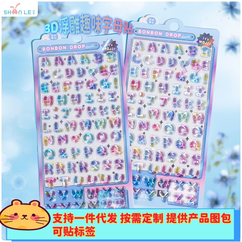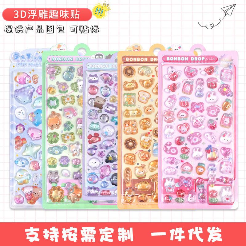 正規認定の新しい3D立体レリーフステッカー、小さな新鮮な文字、ドーパミンガカパターン、漫画のかわいいステッカー