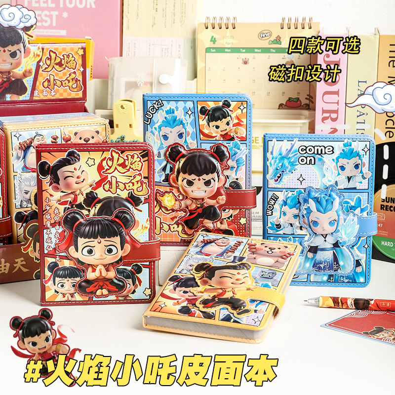 炎小ガタン皮面本A6カラーページ磁気ボタンノートの正規版は、手帳の学生が手帳を厚くする