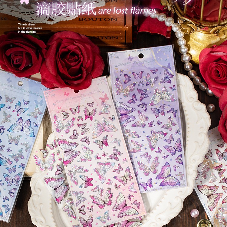 語閑PETシール浮蝶星夢シリーズ箔押し材質蝶テーマ手帳造景装飾タイル素材