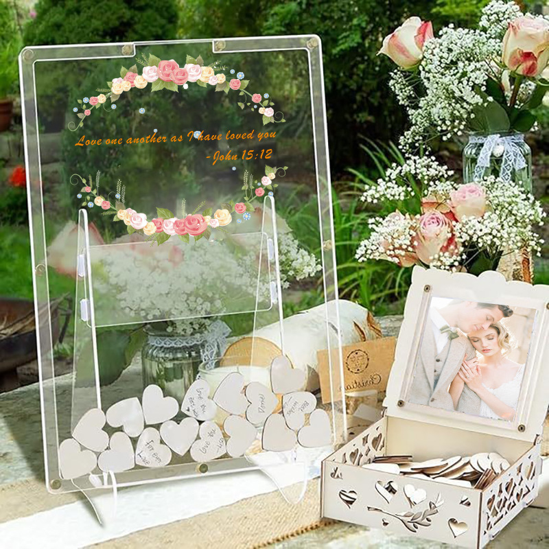 国境を越えた新しい高級感のあるウェディングサインボード、純粋な透明な黒のメッセージボード、ハート型の装飾、結婚式のメッセージブック