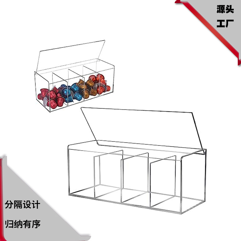 スポットアクリルコーヒーカプセル収納ボックス透明4コンパートメントスナックティーバッグ蓋付きオフィスデスクトップディスプレイボックス
