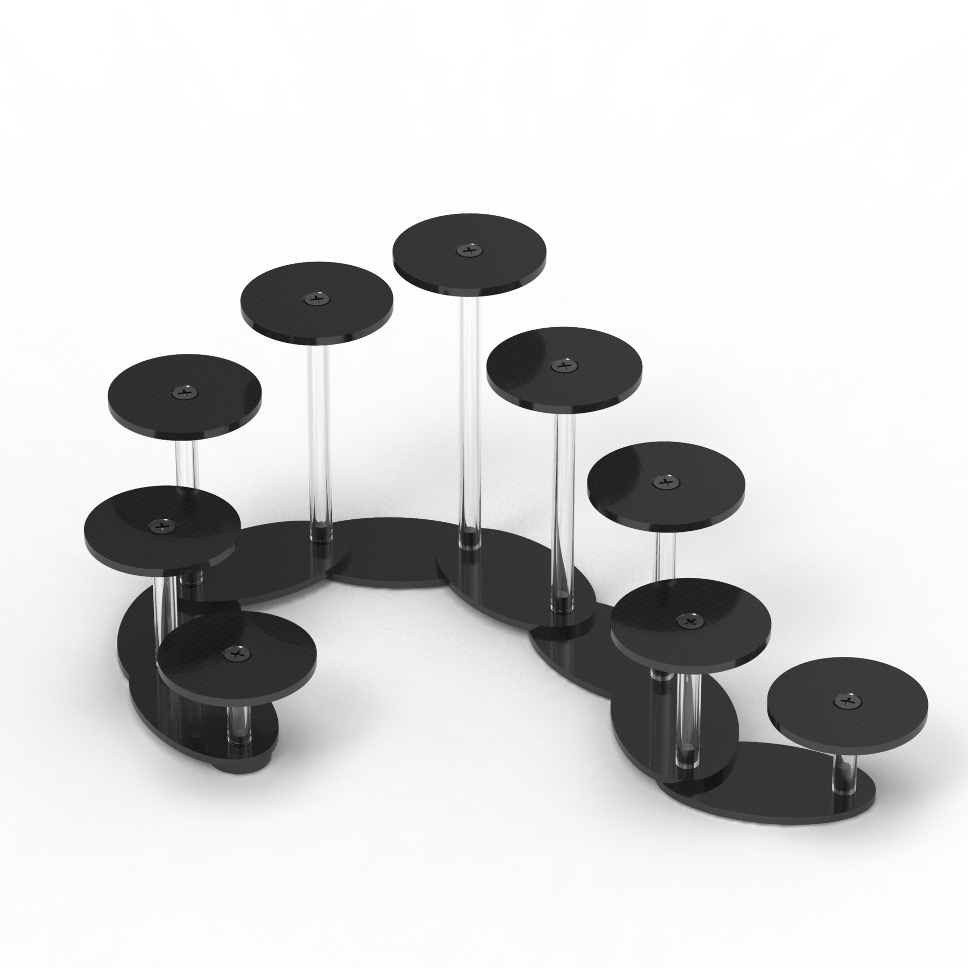 源工場のアクリル展示棚の四角形の円形の手は陳列棚の台形の多層の香水の公仔のアクセサリーの展示台を作ります。