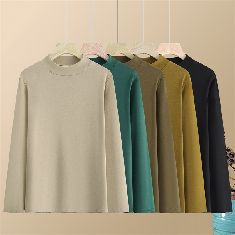 お母さんの半高襟の大きいサイズの弾力の底のシャツの女性の2024新型の中高年の秋の長袖の純色の中で小さいシャツを掛けます。