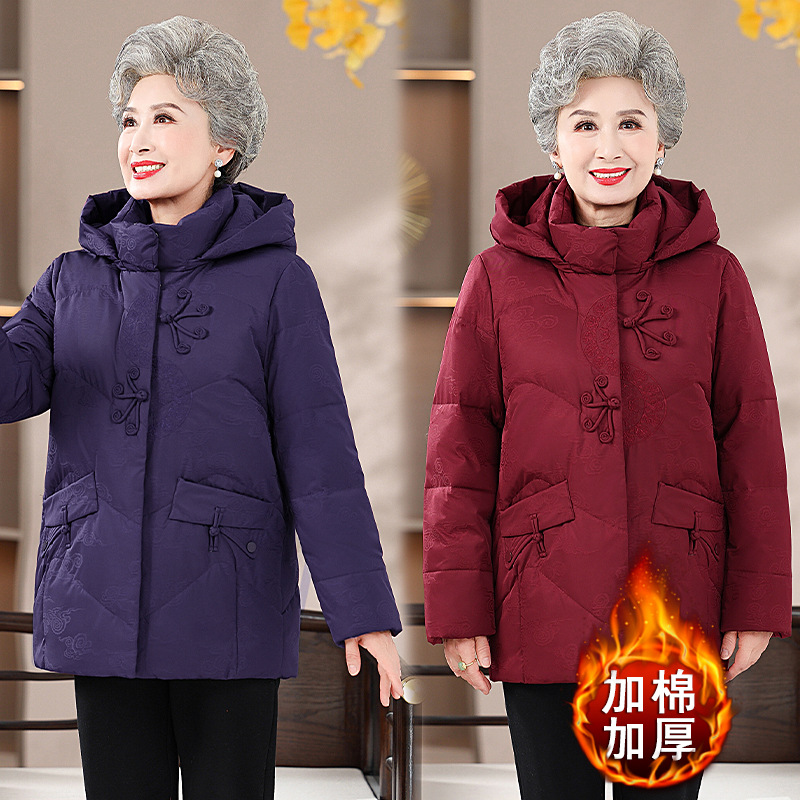 高齢者の中長タイプのダウン綿の綿服2024の新しいお母さんの冬服と綿の厚い綿入れのおばあさんの上着