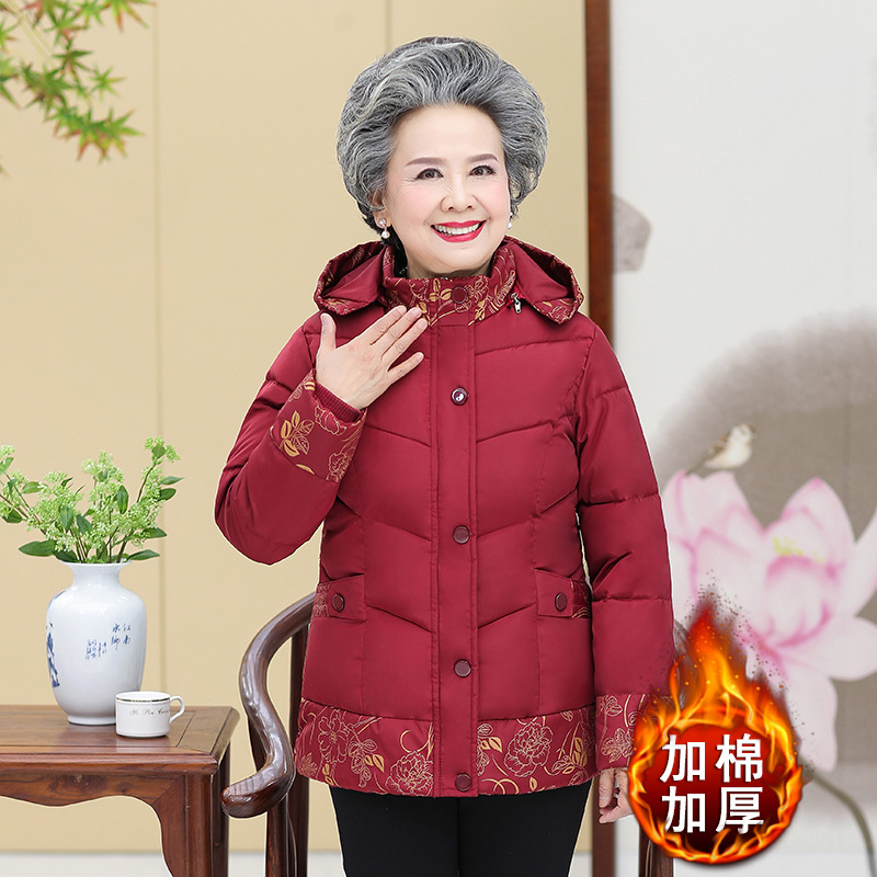 2024新型中高年女性冬服ダウン綿入れコートに綿を入れて綿入れを厚くする老婦人冬綿服女性