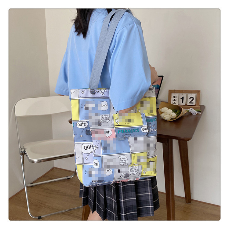 ワンショルダー学生バッグ漫画新しいキャンバスかわいいファッション小さな正方形バッグ新鲜なシンプルなポータブルバッグ塾バッグ通