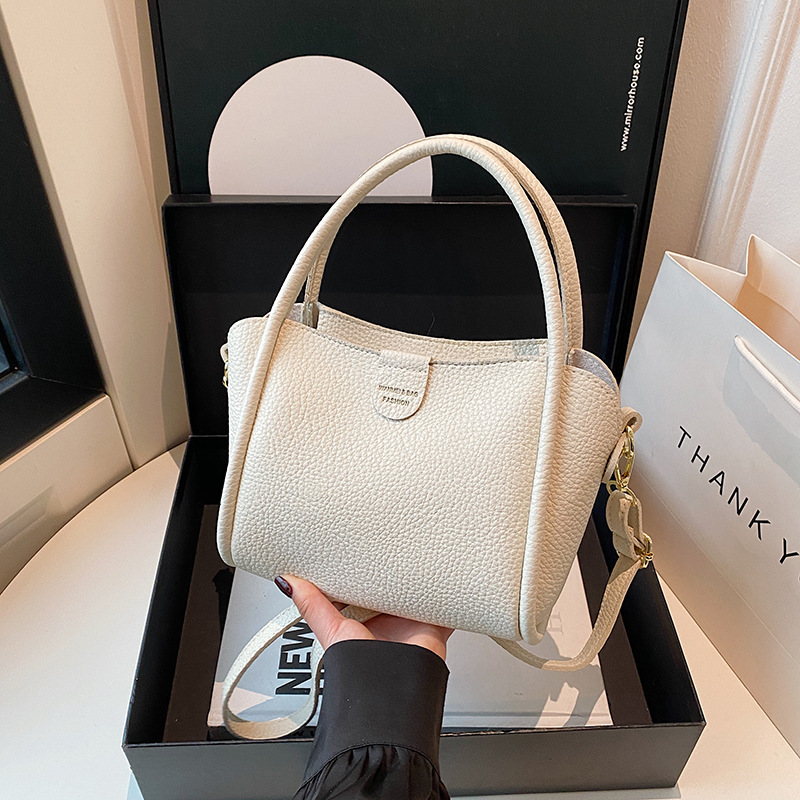 女性用クロスボーダーテクスチャードポータブルバケットバッグ、ハイエンドソリッドカラーファッション通勤ハンドバッグ、大容量多用途ショルダーバッグ
