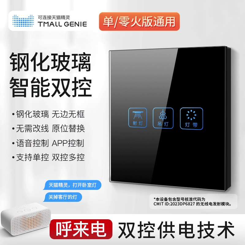 天猫精灵APP知能スイッチ単零火bluetoothスイッチ音声遠隔強化ガラススイッチに接続できる