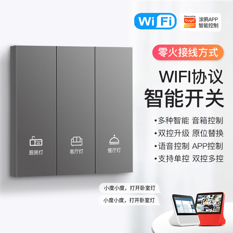 TuyaアプリスマートコントロールWiFiワイヤレスリモート音声パネルTUYA欧英規ゼロファイバーバージョン越境専用