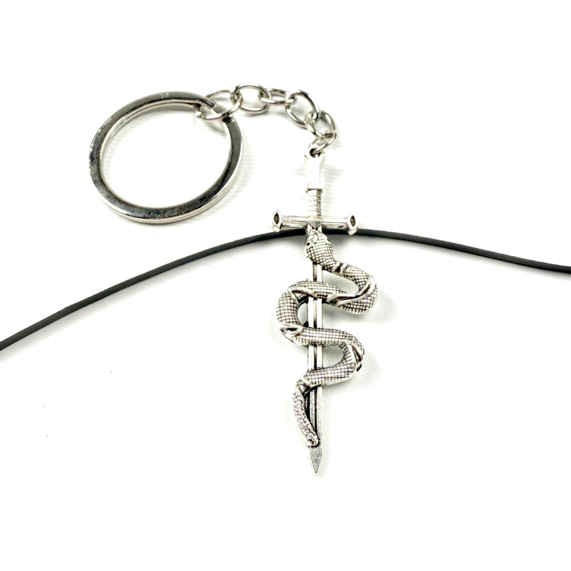 ヨーロッパとアメリカのクロスボーダー新しいスネークヘッドロングソード誇張ゴシックキーホルダーパーソナライズされたバックパックキーペンダント