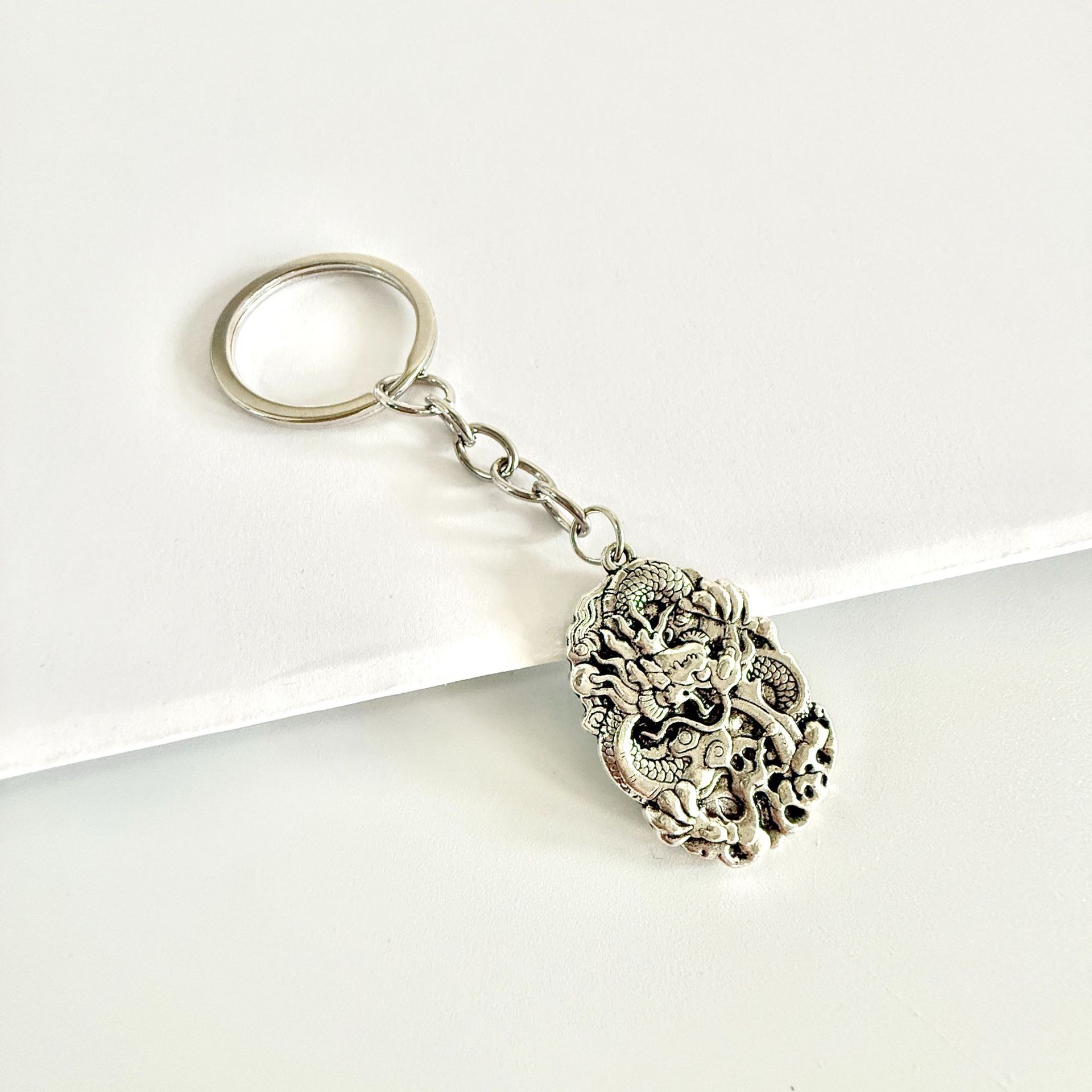 エスニックスタイルのファッション個性クリエイティブレトロ小動物干支エンボス加工ドラゴンキーホルダー男性と女性のためのパンクヒップホップペンダント