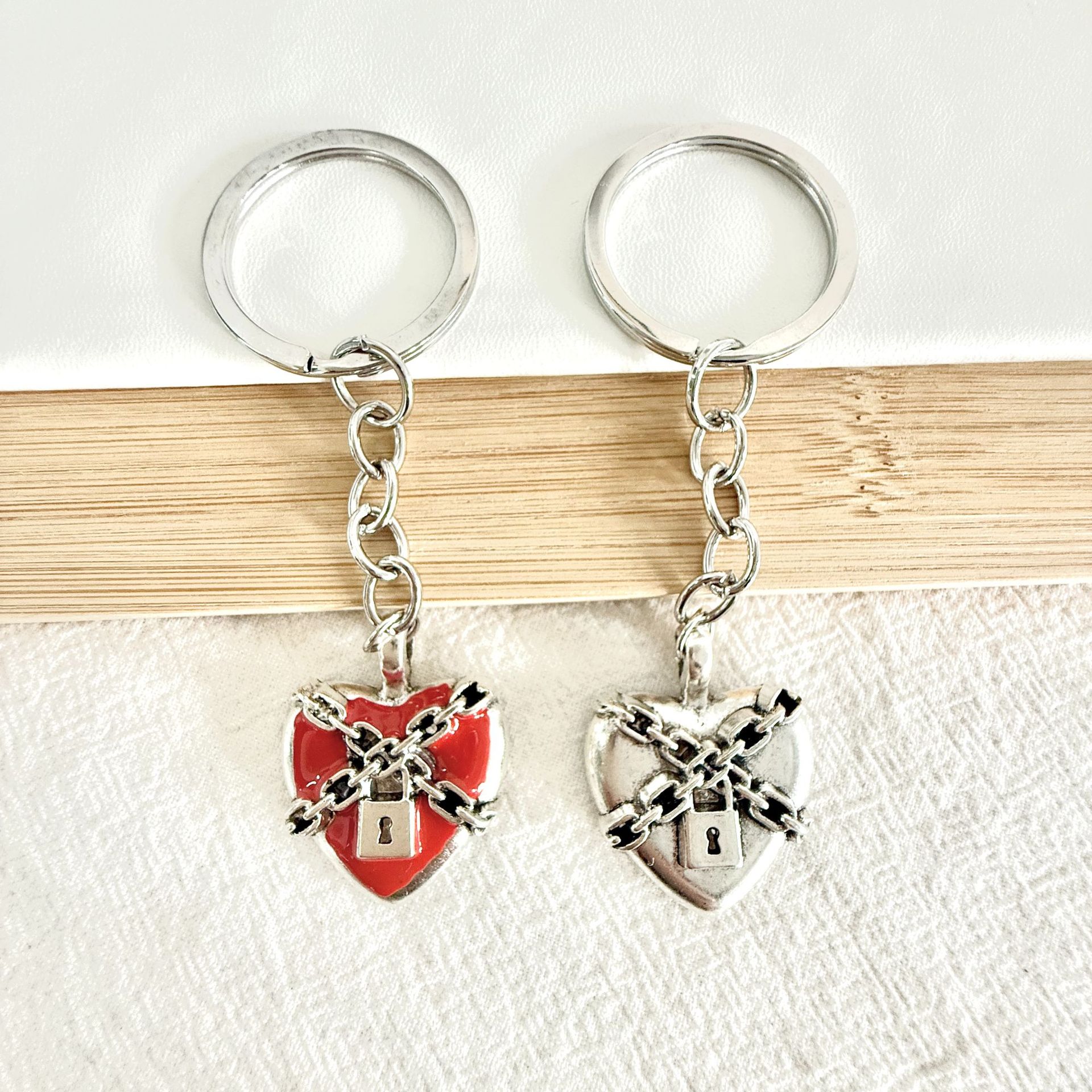 国境を越えた熱い販売ゴシックスタイルキーホルダーチェーンロックラブペンダントキーホルダー