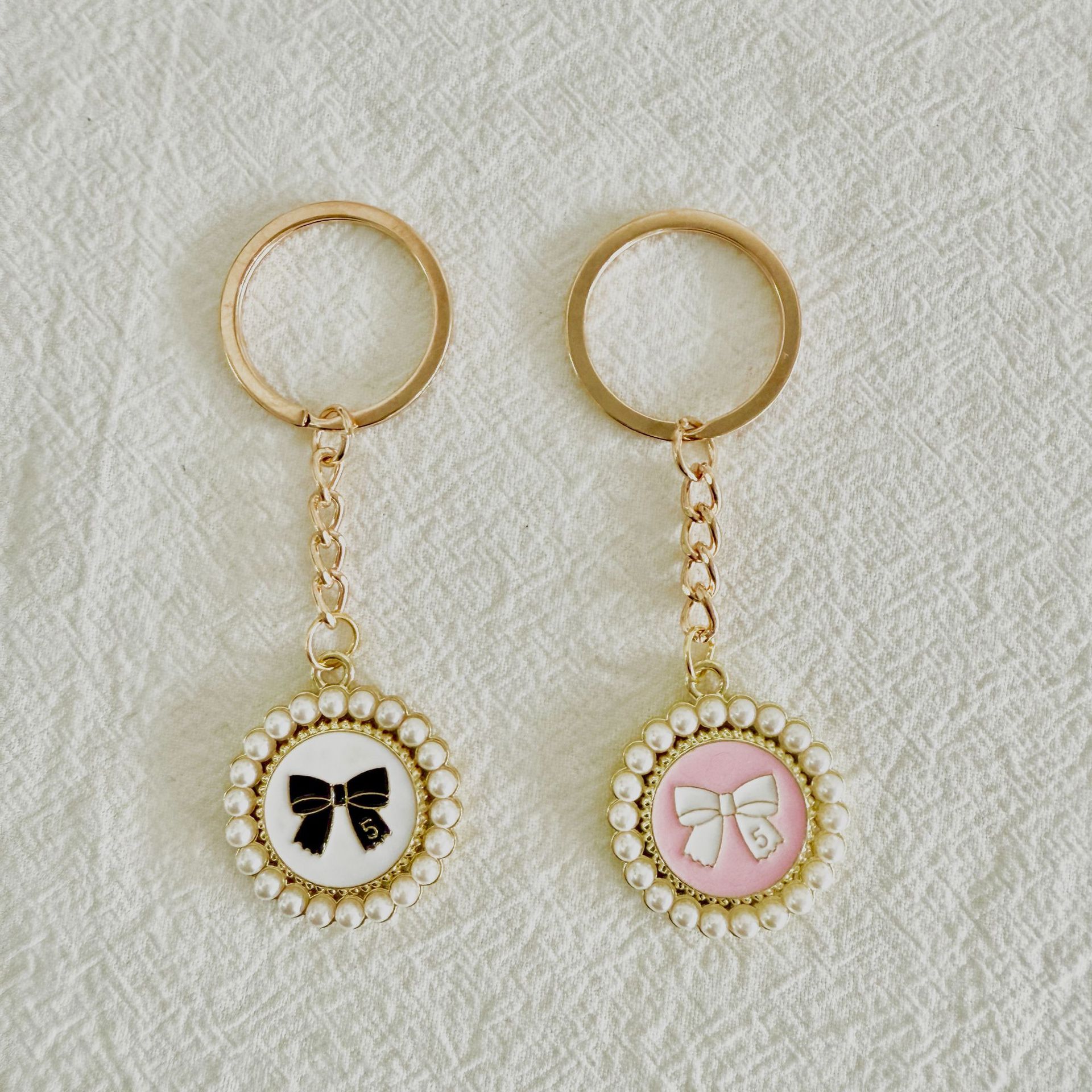 小さい清新な真珠の蝶結びの丸いペンダントのキーホルダーは自動車の鍵を包んで飾ります。