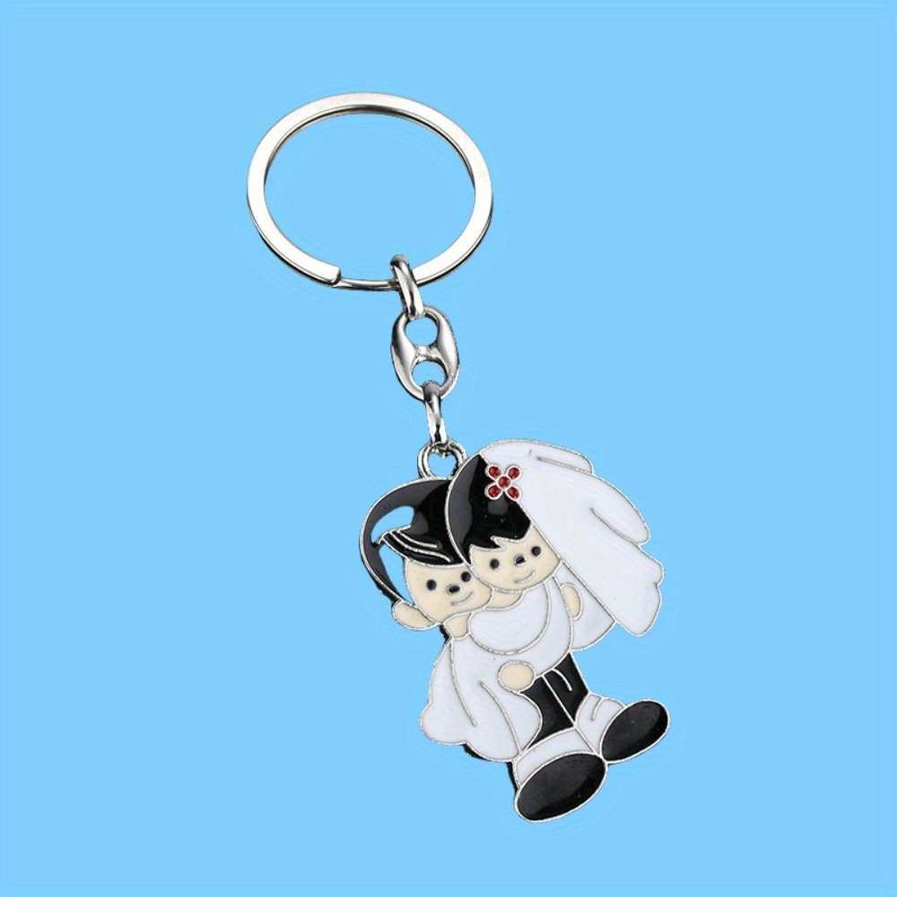 热い贩売金属エナメルカップル新郎新妇漫画クリエイティブカーバッグ金属キーホルダーアクセサリーストラップ