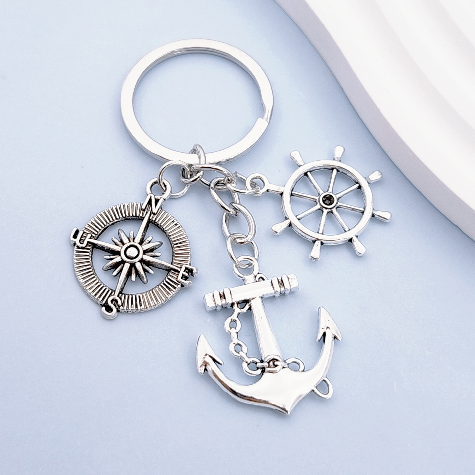欧米のファッション航海の復古船舵のアンカーの鍵はコンパスのキーチェーンの自動車のカバンの装飾のペンダントを掛けます。