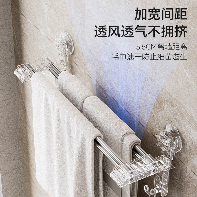 吸盤折りたたみタオルバー収納ラックバスルームシーン多目的家庭用パンチフリータオルバー折りたたみ収納