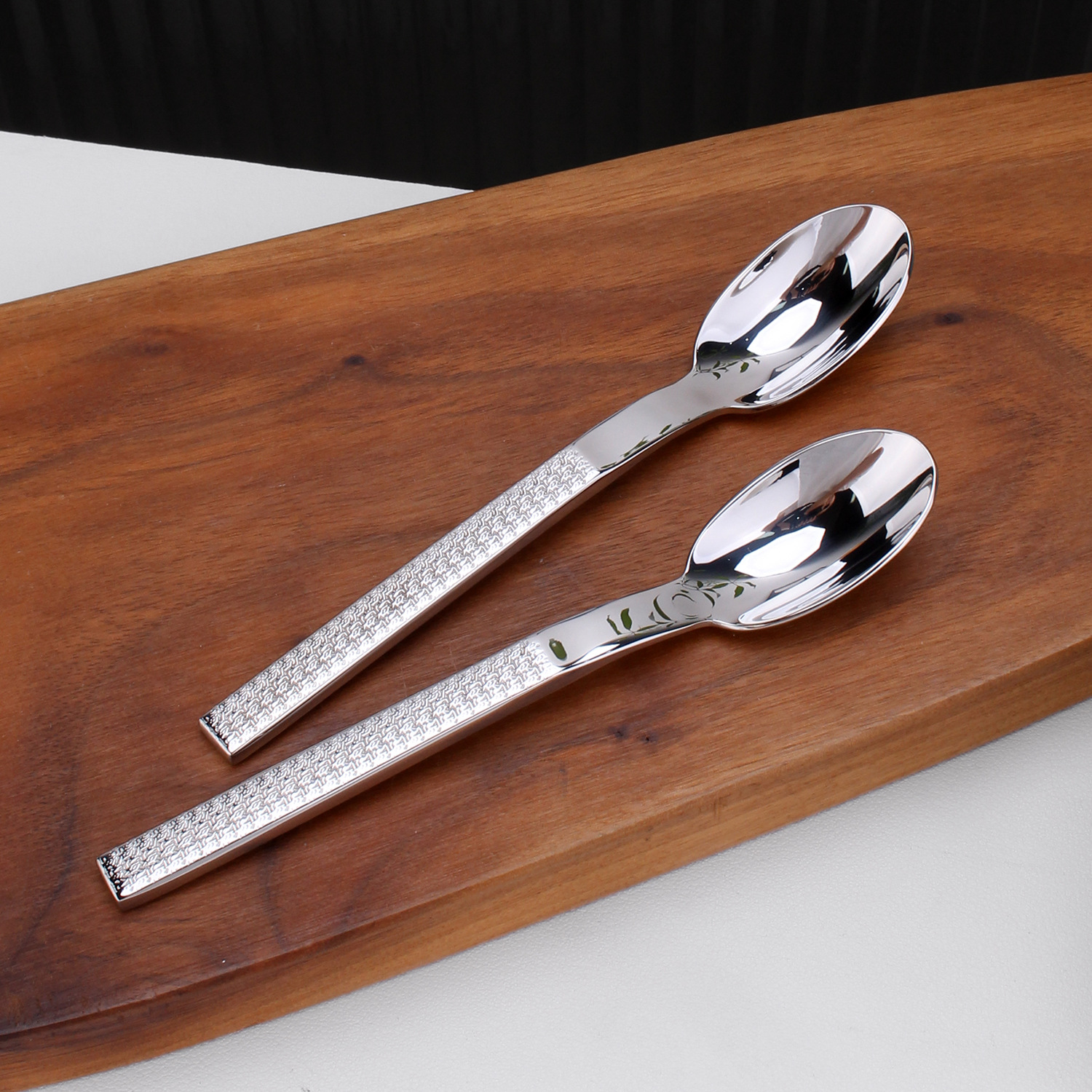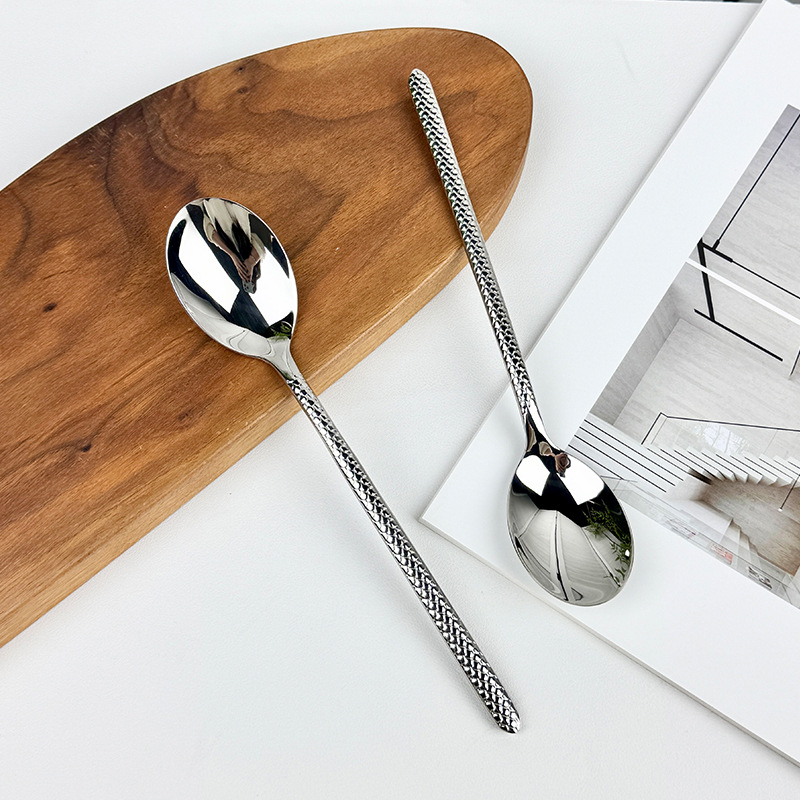 チョックメン Zhuode Ming 18/10 ステンレス鋼テーブルスプーンスチールスプーンミラーライトパターンスプーンライススプーンビビンバスプーン