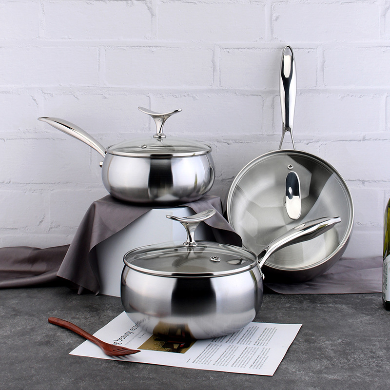 Cookone 18/10ステンレス厚さ飛魚単柄ミルク鍋304煮麺シチュースープ温かいミルク煮粥補助鍋