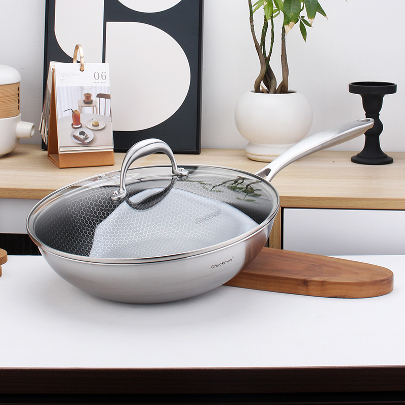 Chockmen卓徳铭18/10ステンレス製のショートカットハニカムの紋様は、コーティングされた炒め物鍋の家庭用30cmをつけない