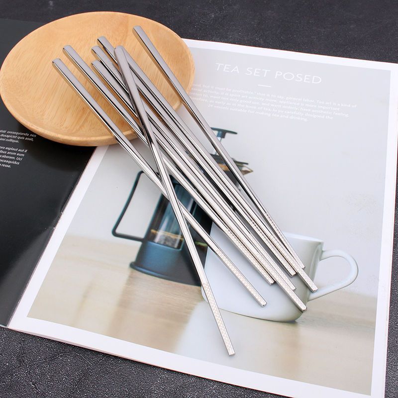 COOKONE18/10ステンレス滑り止め厚手箸角食箸パーマ防止家庭用鏡光中空衛生食器