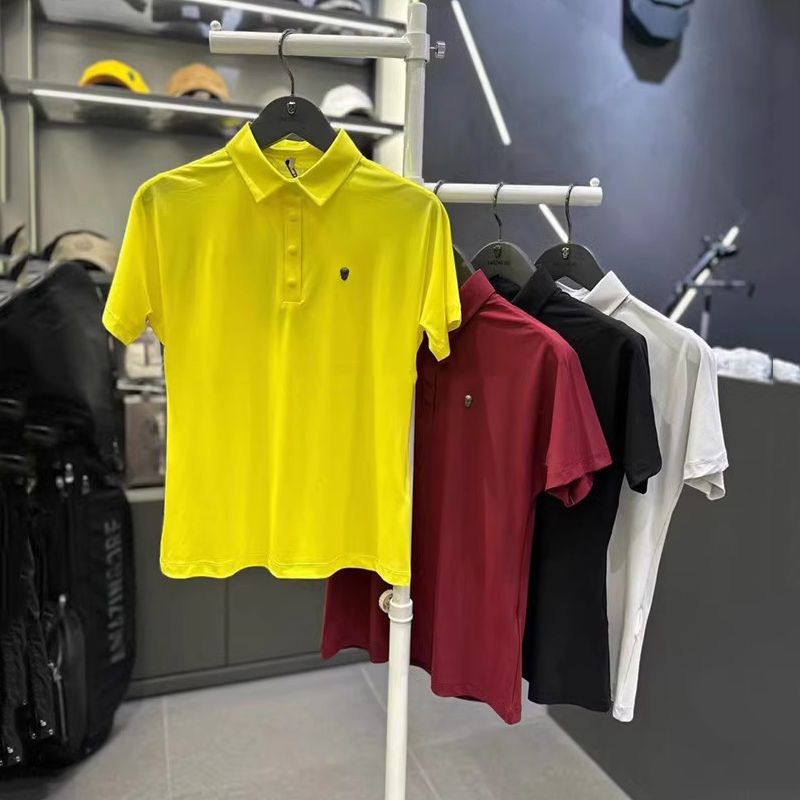 韓国風ゴルフ紳士服夏軽量通気性コールドトップ無地ラペルスリムフィット半袖Tシャツ