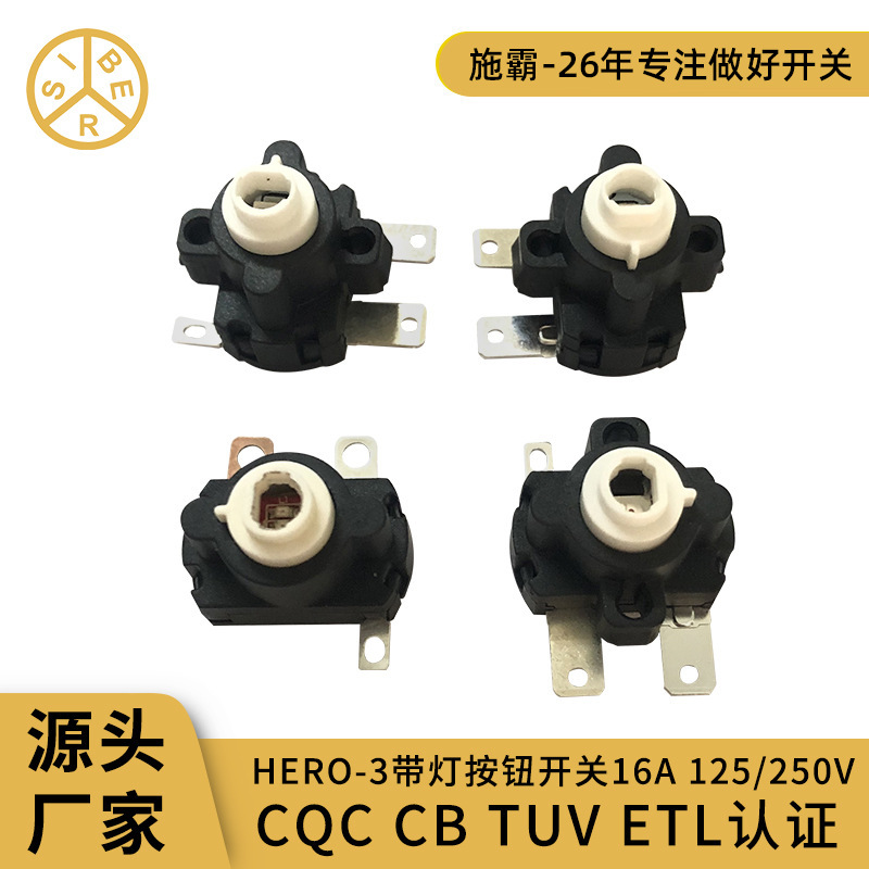 施覇電器は新型ソケットスイッチHERO-3小体積ボタンランプ16a電流ボタンスイッチを供給している