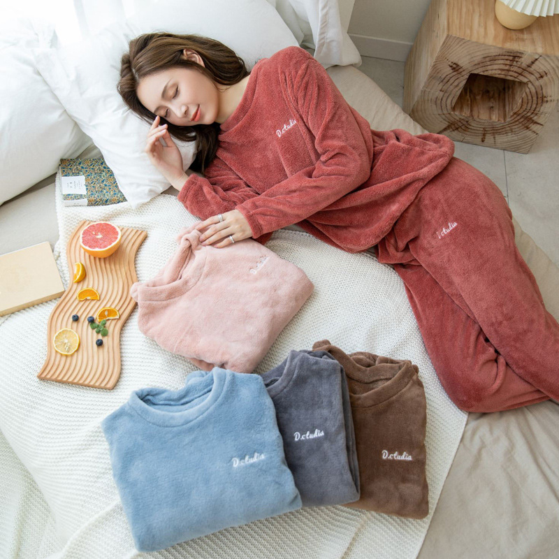 保温スーツの家庭服の女性フランネルの暖かいズボンのスーツは厚いサンゴのベルベットのジャカードの秋冬の暖かいパジャマを厚くします。
