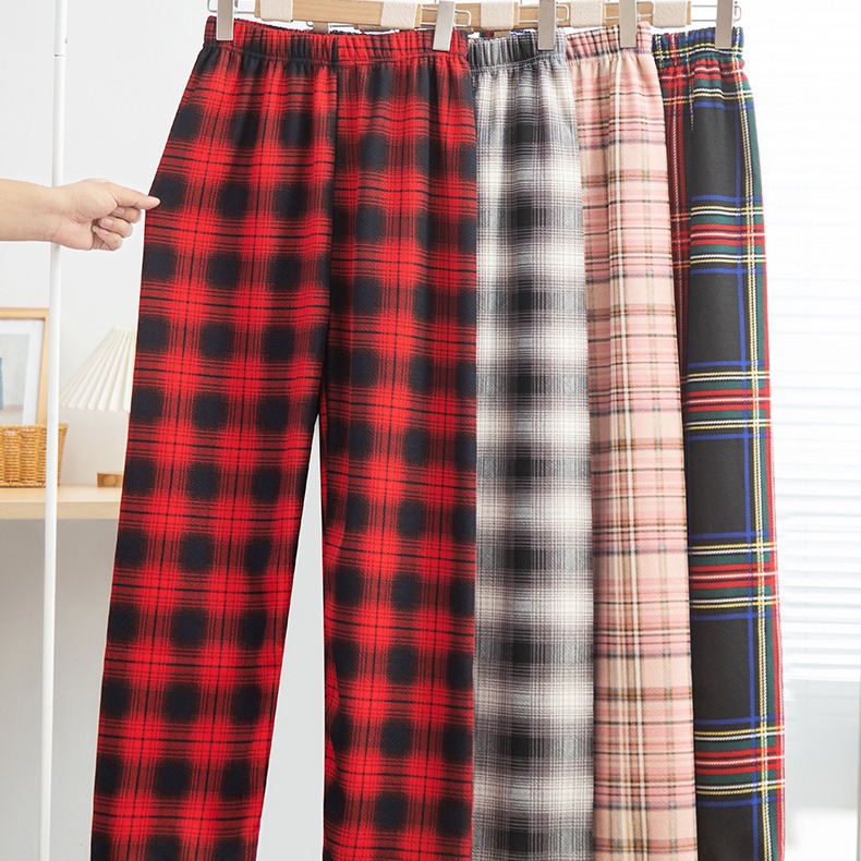 羊の小毛の格子縞のズボンとベルベットの女性のズボンの秋冬の保温の広い足のズボンの高い腰のまっすぐなズボンの外国貿易のズボン