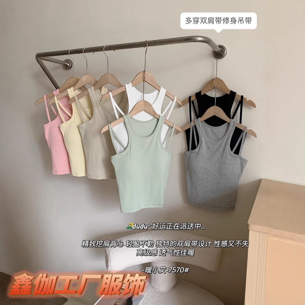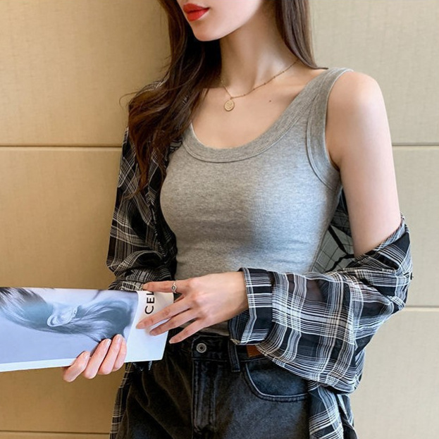 ヴィクトリアの同じスタイルの女性用ベスト、夏の新しいスタイルのリブコットンラウンドネック、露出防止、屋外で着用できるスリングベース