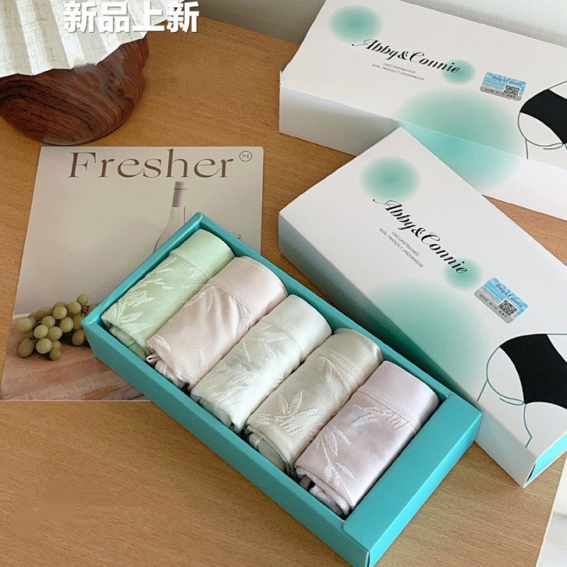 2861 フローティングライト竹影抗菌シルク下着女性の薄い通気性延長底クロッチミッドウエストブリーフ女性の下着