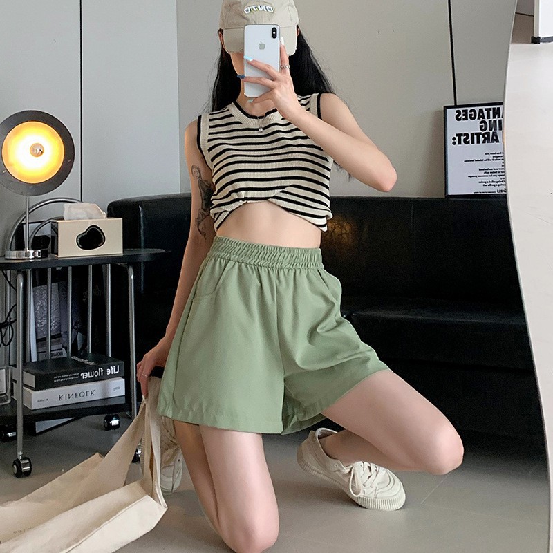 工装半ズボン女2024夏の薄カジュアル広脚ズボン韓国版高腰がゆったりして痩せている外着百合三分ズボン