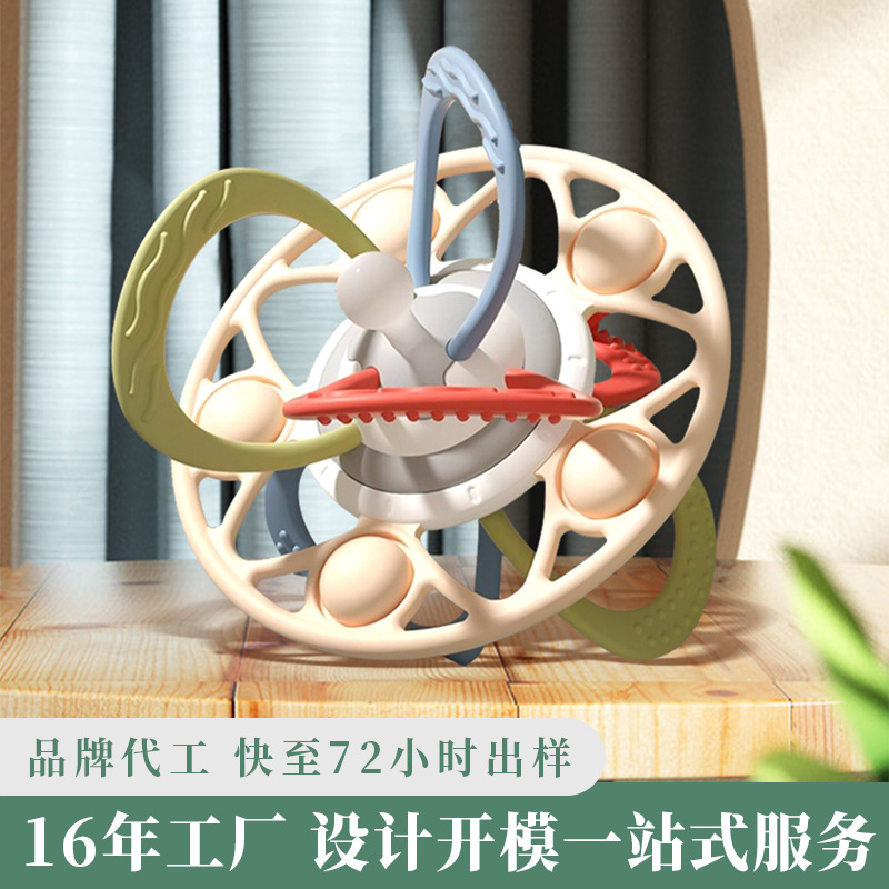 国境を越えた新型マンハッタンの手でボールをつかむ赤ちゃん玩具食品級シリカゲルは赤ちゃんの3 ~ 6個の三日月ゴムをかむことができる
