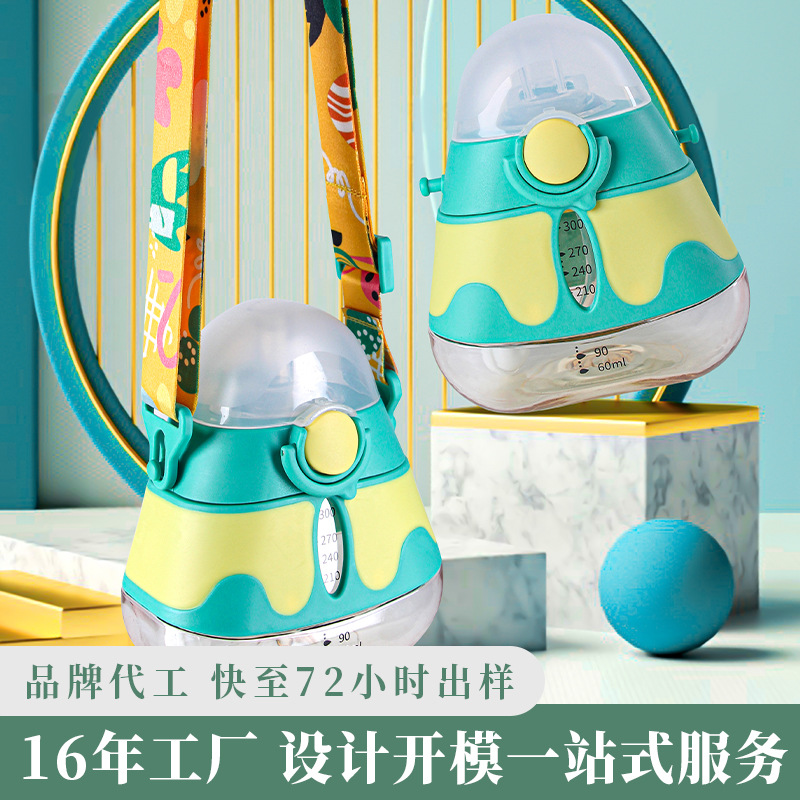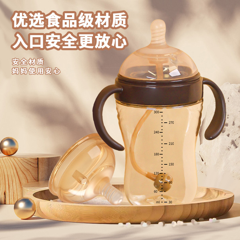 定制300mlPPUS婴儿奶瓶 食品级硅胶奶嘴带柄耐高温吸管重力球奶瓶